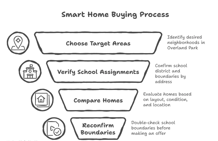Instead of guessing based on a zip code, neighborhood name, or what a listing says, the smartest move is to search by address first and verify the assigned schools through official tools. Blue Valley offers a Find My School tool, Shawnee Mission points buyers to its boundary maps and school finder, and Olathe tells families to use the Johnson County AIMS locator if they are unsure which boundary area they live within.